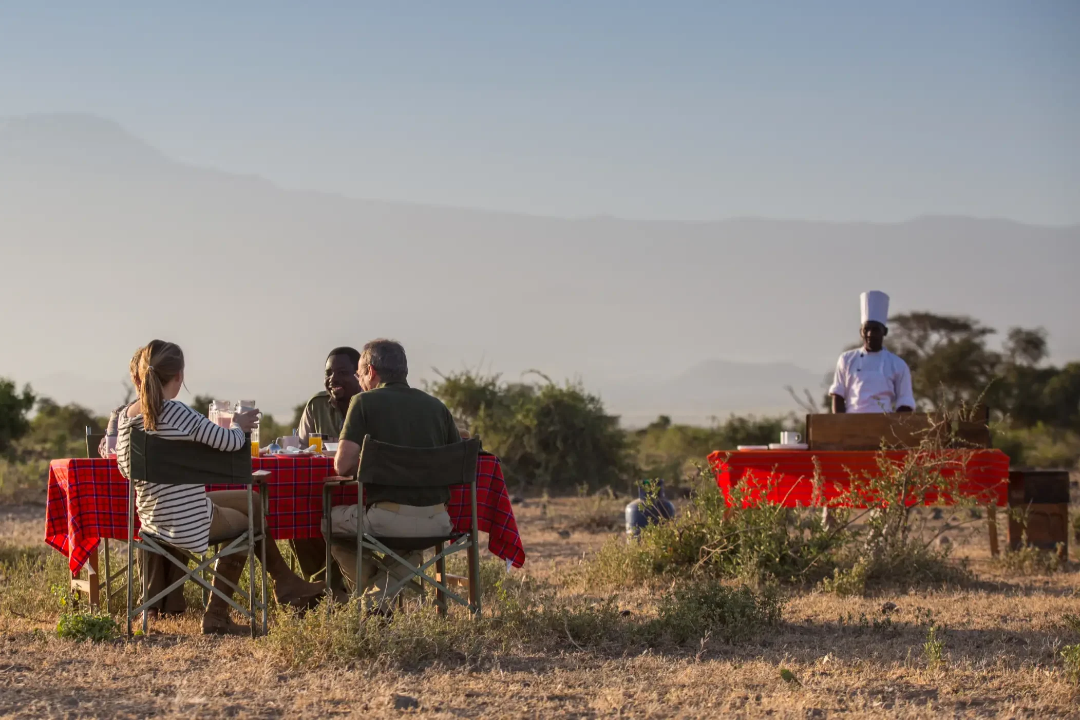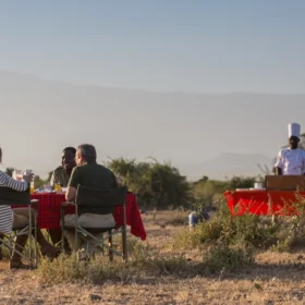 Gästerna kan njuta av sina måltider i den öppna matsalen med utsikt över savannen eller som en del av en privat picknick ute i det fria.