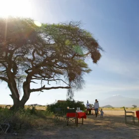Vid det majestätiska Mount Kilimanjaro ligger Elewana Tortilis Camp. Här bjuds gästerna på en exceptionell safariupplevelse i hjärtat av Amboseli Nationalpark.